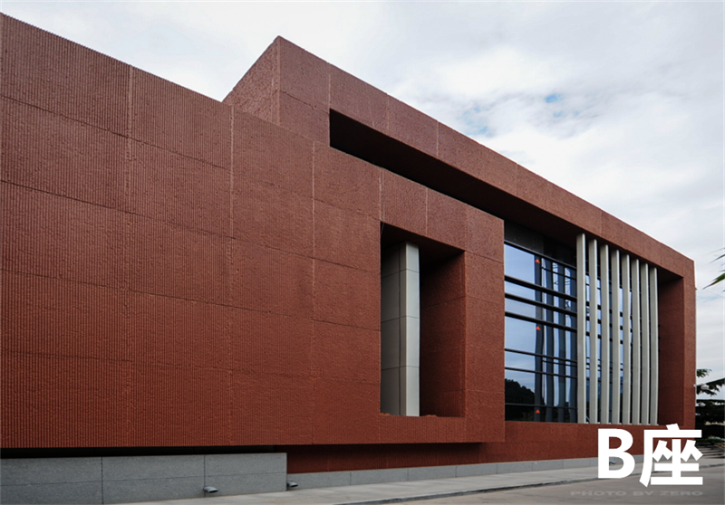 “A”“B”雙樓,猶如一部翻開(kāi)的巨著:A座以時(shí)尚、張揚(yáng)的冰灰色為主,整齊規(guī)劃的落地窗宛如印刷方格,爬于中間的三只蜜蜂正抖動(dòng)羽翼、簇頭采蜜,恰如勤奮的讀者人書(shū)寫(xiě)著激越昂揚(yáng)的現(xiàn)代畫(huà)卷。