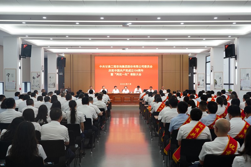 7月1日,甘肅工程咨詢集團(tuán)召開慶祝中國(guó)共產(chǎn)黨成立104周年暨“兩優(yōu)一先”表彰大會(huì),回顧黨的輝煌歷程,弘揚(yáng)偉大建黨精神,全面展示集團(tuán)黨建工作成效和黨員干部昂揚(yáng)風(fēng)貌,激勵(lì)各級(jí)黨組織和全體黨員凝心聚力、擔(dān)當(dāng)作為,奮力推動(dòng)集團(tuán)公司高質(zhì)量發(fā)展邁向新臺(tái)階。集團(tuán)公司黨委書記、董事長(zhǎng)張佩峰出席并講話,總經(jīng)理、董事陳一夫及在家領(lǐng)導(dǎo)班子成員出席,黨委委員、副總經(jīng)理孟康榮宣讀表彰決定,紀(jì)委書記、監(jiān)察專員師宗正主持會(huì)議。