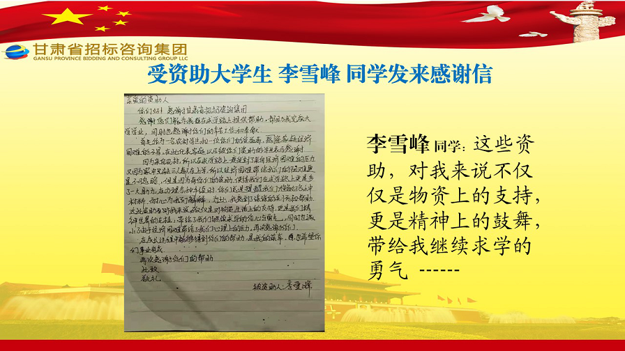 甘肅省招標(biāo)咨詢集團(tuán)有限責(zé)任公司心系困難學(xué)子 真幫實(shí)助顯真情