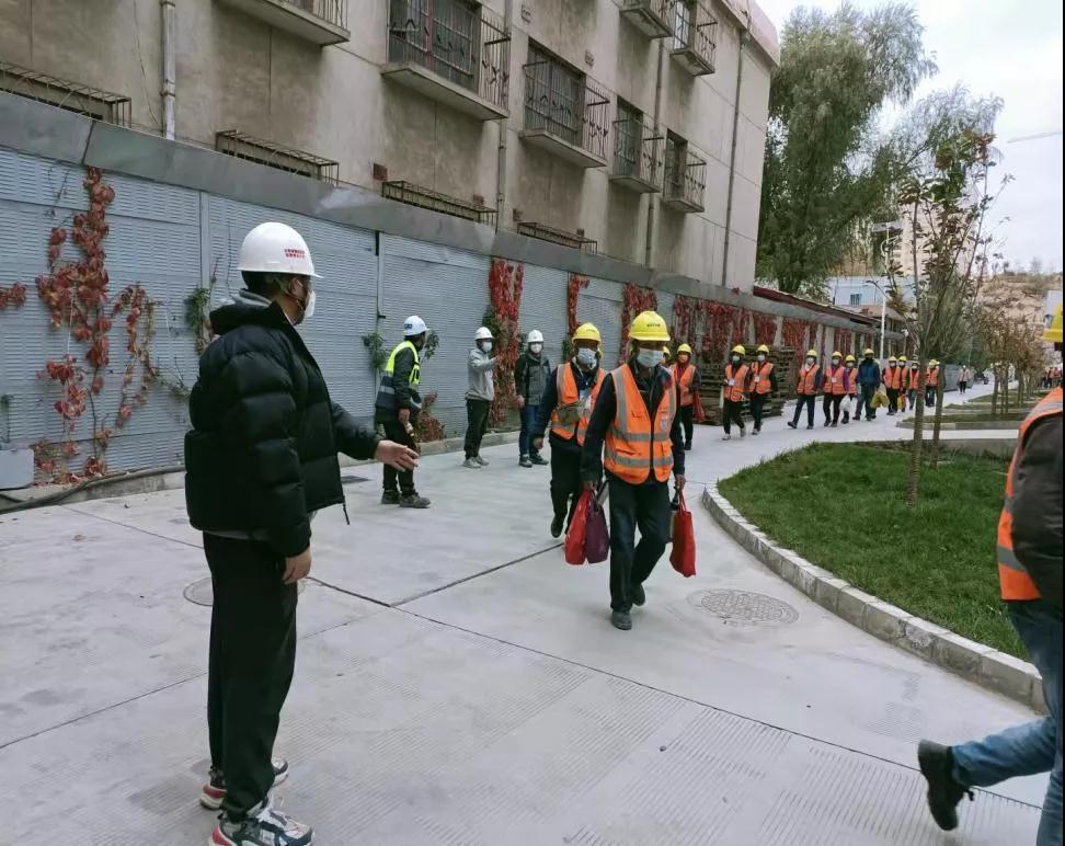 施工現(xiàn)場因勞務(wù)人員體量大(高峰值有1300人同時(shí)施工)、組織工作難度大、現(xiàn)場需解決的問題較多,監(jiān)理組負(fù)責(zé)人張昕朗、總監(jiān)代表柳曉恩、亢巖多次組織召開專題會(huì)議,總結(jié)經(jīng)驗(yàn),對(duì)施工單位疫情防控工作提出具體做法要求和建議:對(duì)施工現(xiàn)場進(jìn)行全封閉式管理,上、下班由各班組負(fù)責(zé)人帶領(lǐng)施工人員列隊(duì)有序進(jìn)出現(xiàn)場,回居住點(diǎn)后不得擅自外出;嚴(yán)禁集中或外出就餐,飯食由各班組安排1-2人,統(tǒng)一采購后分發(fā);協(xié)助施工單位積極組織工人進(jìn)行核酸檢測(cè),并有序組織各分包單位分批次上下班和就餐;往返工作生活區(qū)所有工人穿戴反光馬甲,佩戴口罩測(cè)量體溫;做好疫情期間施工人員的心理疏導(dǎo)工作。