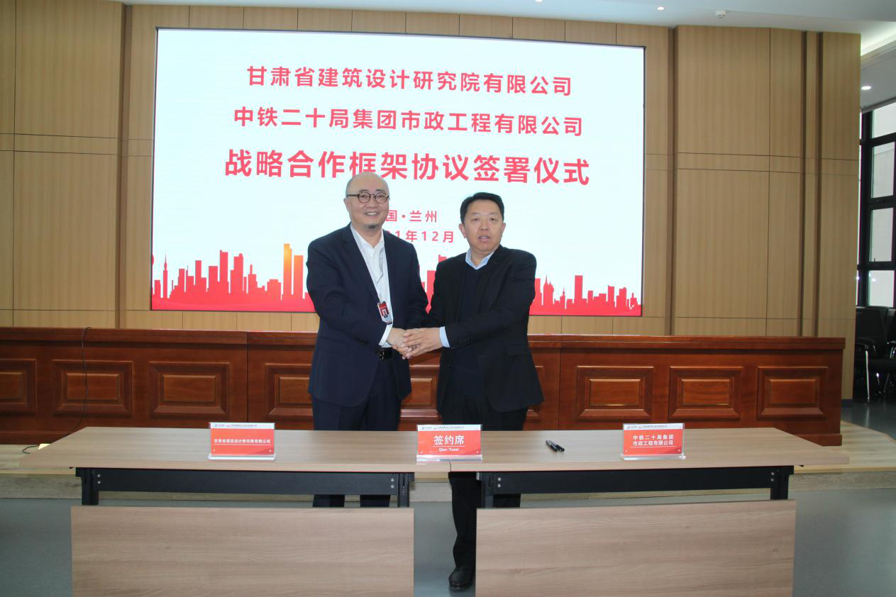 近日,建筑設計院與中鐵二十局市政公司在建筑設計院會議中心舉行戰(zhàn)略合作框架協(xié)議簽署儀式。中鐵二十局黨委常委、副總經(jīng)理苗文懷,西北區(qū)域指揮部總經(jīng)理田培忠,市政公司黨委書記、董事長萬雪琳,房地產(chǎn)公司總經(jīng)理崔野,建筑設計院董事長米宏圖、黨委書記李向軍、總經(jīng)理曹慶、副總經(jīng)理周文新等出席簽約儀式。