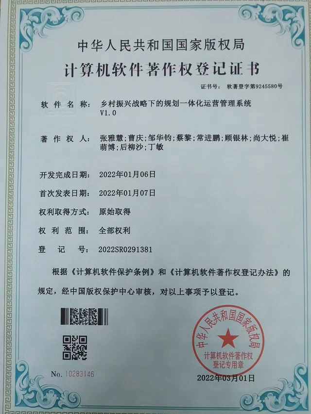 近日,從國(guó)家版權(quán)局傳來(lái)好消息,甘肅省建筑設(shè)計(jì)研究院有限公司自主研發(fā)的“鄉(xiāng)村振興戰(zhàn)略下的規(guī)劃一體化運(yùn)營(yíng)管理系統(tǒng)V1.0”,獲得國(guó)家版權(quán)局頒發(fā)的計(jì)算機(jī)軟件著作權(quán)登記證書(shū)。