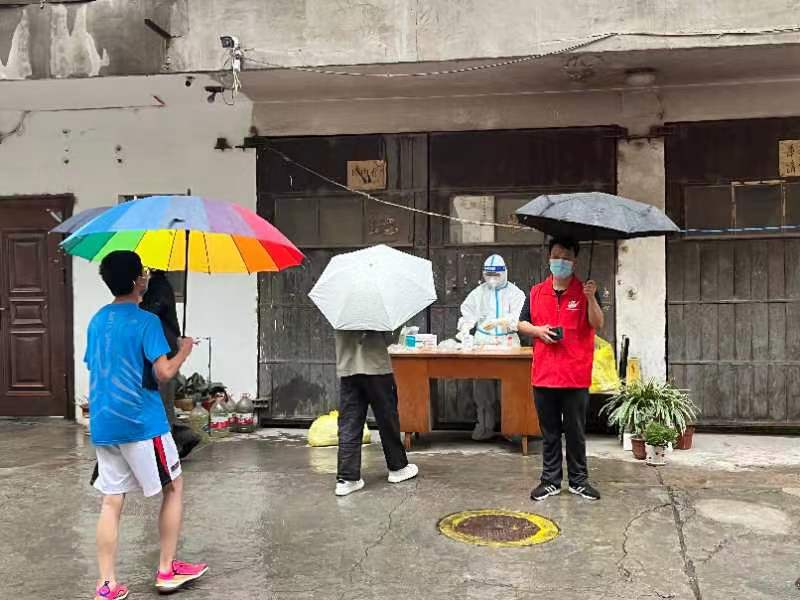 在高風險社區(qū),規(guī)劃設計院第十六黨支部入黨積極分子劉偉正在執(zhí)行“封門”任務?!耙唤拥酱_診通知,我們就要連夜對密接住戶施行管控措施,工作時間是24小時隨時待命,防護服穿脫太麻煩,累了我找地方靠一會兒就行?!睂O偉略帶疲倦地說道。高風險區(qū)意味著與病毒更近距離的接觸,對志愿者的規(guī)范操作要求也更加嚴格。每一次敲門、登記、核對人數(shù)、掃碼做核酸等看似簡單的流程,他都會在腦海里反復演練。突然的封門,會有一些居民鬧情緒,面對激烈的言辭,他總能耐心安撫,爭取居民對防控措施更多的理解和支持??臻e時,他會拎著大袋小袋,給住戶送些必備物資,提醒他們做好防護,做些力所能及的事情。勇者不孤,劉偉僅僅是這支隊伍中的一分子,還有像武利平、楊致遠、姚友龍、劉澤靖、孔利兵、巨斌、楊一、劉偉、滿子熠、李文磊、仲乃河、蘇曉文、魏翔等像他一樣的志愿者,正在社區(qū)疫情防控一線,默默地貢獻著自己的力量。他們有的是企業(yè)中層“一把手”,有的是建筑師,有的是規(guī)劃師,有的是財務管理人員……,但穿上白色的防護服、換上紅色的馬甲,他們就有了一個共同的名字——疫情防控志愿者。
