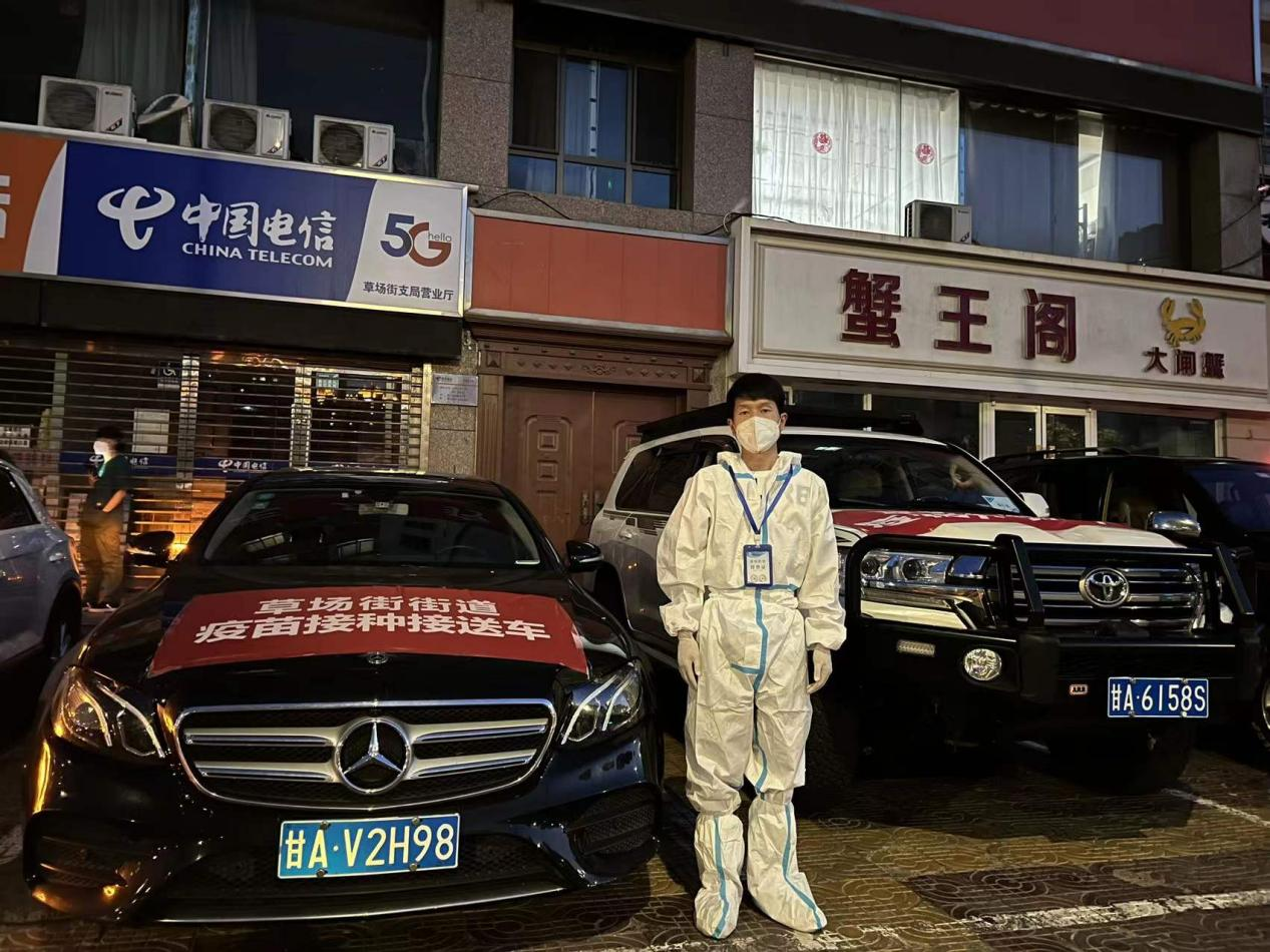 張文慶作為草場街街道愛心車隊的“老司機”,他的任務就是每天開著私家車以“一個采樣點一輛車”的模式護送“大白”上下班,正常的工作時間是下午兩點到第二天凌晨兩點,如果遇到緊急情況,工作到天亮也是常有的事情?!搬t(yī)護人員非常辛苦,能為他們做點什么,我很開心”。每次接送任務結束后,張文慶都會對車輛進行認真地清洗和消毒,還會在車里準備一些礦泉水和小零食。接送中雖然看不到彼此模樣,但卻依然能夠感受到對方最真摯的微笑。危難時刻,許許多多的張文慶們?yōu)槌鞘虚_辟了一條盡快恢復“煙火氣”的寶貴通道。