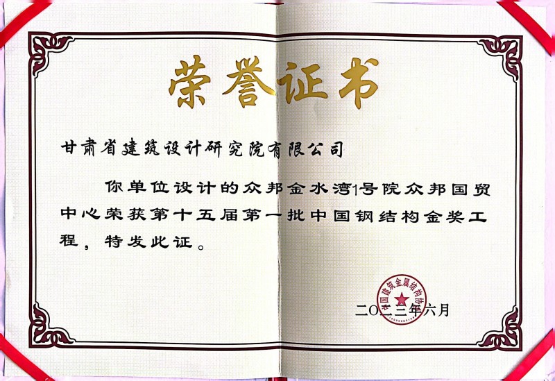 近日,從中國(guó)建筑金屬結(jié)構(gòu)協(xié)會(huì)傳來(lái)喜訊,由省建筑設(shè)計(jì)院總建筑師、甘肅省工程勘察設(shè)計(jì)大師馮志濤領(lǐng)銜團(tuán)隊(duì)設(shè)計(jì)的“眾邦國(guó)貿(mào)中心”榮獲“第十五屆第一批中國(guó)鋼結(jié)構(gòu)金獎(jiǎng)工程”榮譽(yù)稱號(hào)。