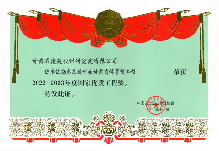 近日,從中國(guó)施工企業(yè)管理協(xié)會(huì)傳來(lái)好消息,由甘肅省工程勘察設(shè)計(jì)大師、省建筑設(shè)計(jì)院總建筑師馮志濤帶領(lǐng)團(tuán)隊(duì)設(shè)計(jì)的甘肅省體育館榮獲“2022-2023年度國(guó)家優(yōu)質(zhì)工程獎(jiǎng)”榮譽(yù)稱號(hào)。
