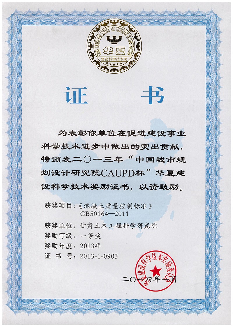 二0一三年“中國城市規(guī)劃設(shè)計(jì)研究院CAUPD杯”華夏建設(shè)科學(xué)技術(shù)獎