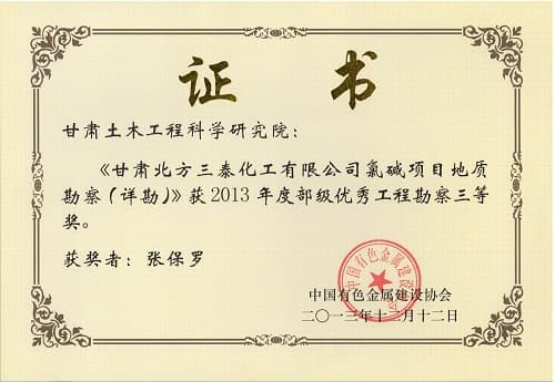 優(yōu)秀工程勘察三等獎
